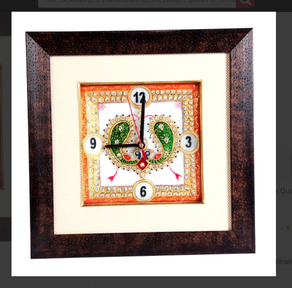 Dimension: 6 X 6 inch approx The beautiful hand-painted images of a pair of peacocks adorned with dazzling beadwork, make this marble meenakari wall clock truly unique.