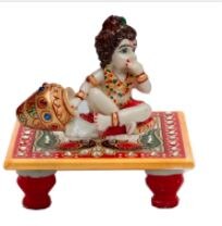This beautiful kanhaiya having makhan from matki & sitting on chowki is such a handmade decorative item, anyone will fall in love for! Innocence Kanha eating makhan from matki & sitting on chowki will enhance the spiritual environment of your showpiece or home temple. The endearing sight of kanha enjoying makhan sitting on a well-decorated chowki portends good luck for the homeowner. This will serve as a memento of your love, care, and spiritual inclination. Best gift items under 500 or return gifts for housewarming ceremony!