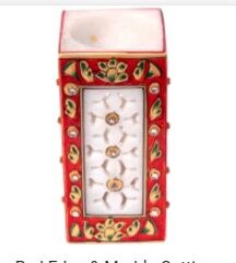 The use of beads further enhances the beauty of this magnificent marble meenakari piece of artwork that is a perfect example of great traditional arts and crafts of India and the delicate skill of marble cutting. What makes this rectangular marble carved pen stand truly stand out is its magnificent marble cutting work bordered by red and gold minakari work. The use of beads further enhances the beauty of this magnificent piece of Indian crafts that is a perfect example of traditional Indian gifts.