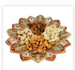 This lotus-shaped marble base serving tray is an exquisite KGM Stone work of craftsmanship on marble stone from the pink city of Rajasthan.